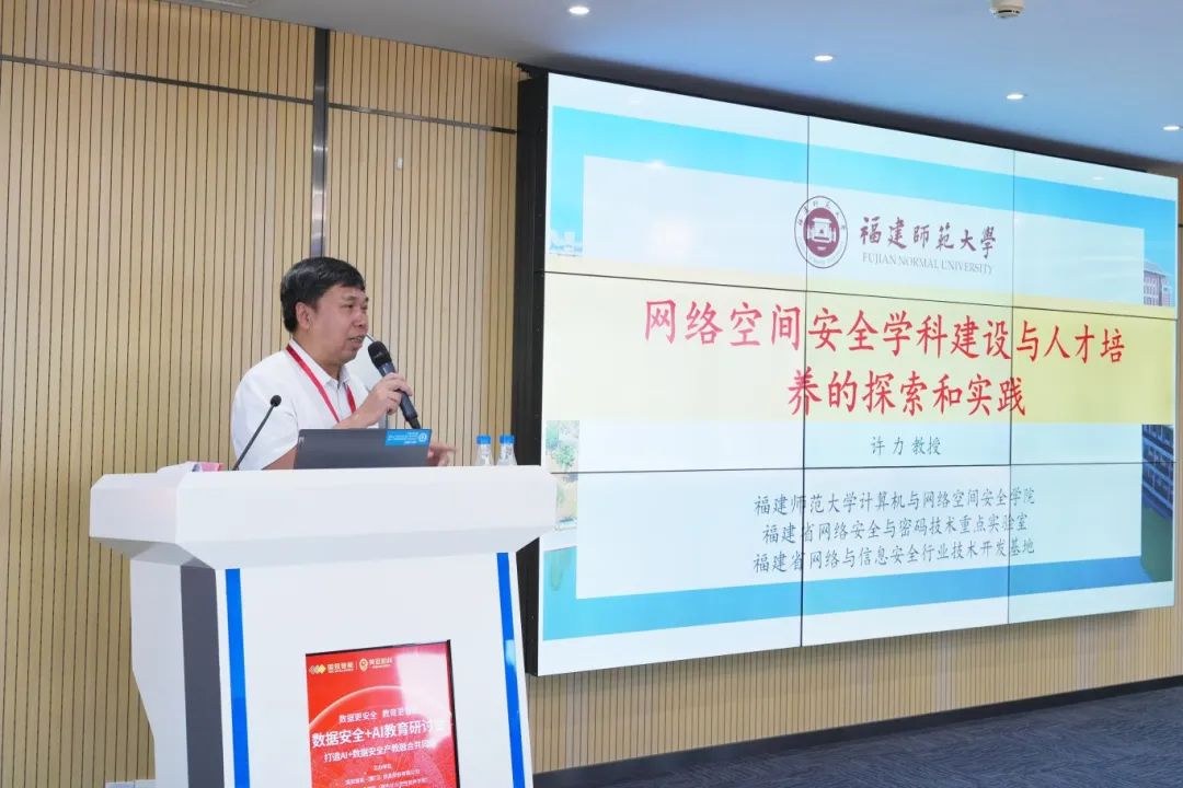 本次研讨会还邀请了福建师范大学计算机与网络空间安全学院院长许力等5位业内资深专家、学者和优秀一线践行者,分别围绕网络空间安全学科建设、AI赋能教育与人才培养、大模型技术发展与产业应用等主题进行了精彩分享。